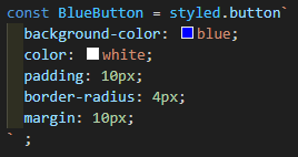 - JavaScript의 템플릿 리터럴을 사용하여 CSS를 작성하는 방식으로